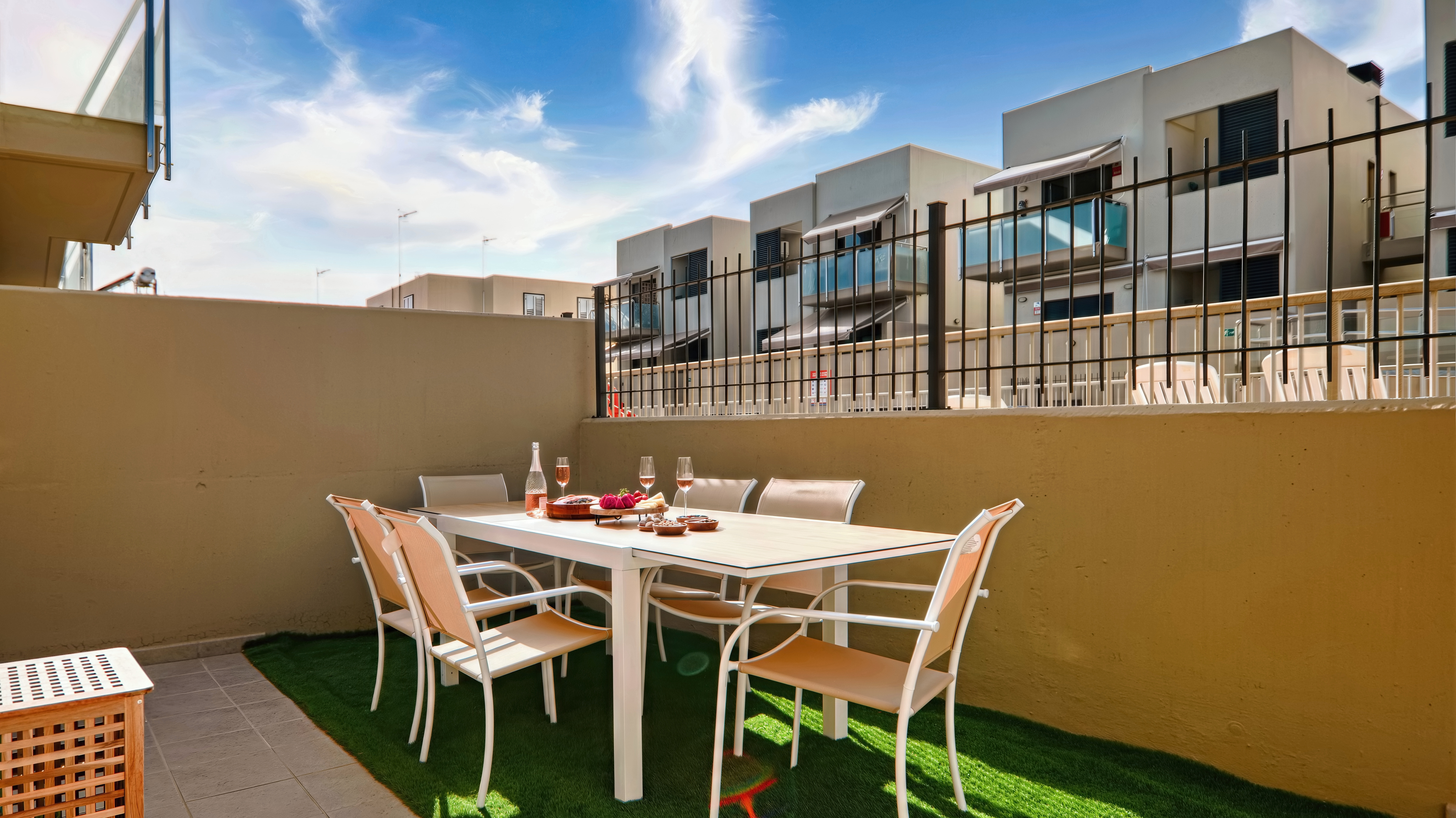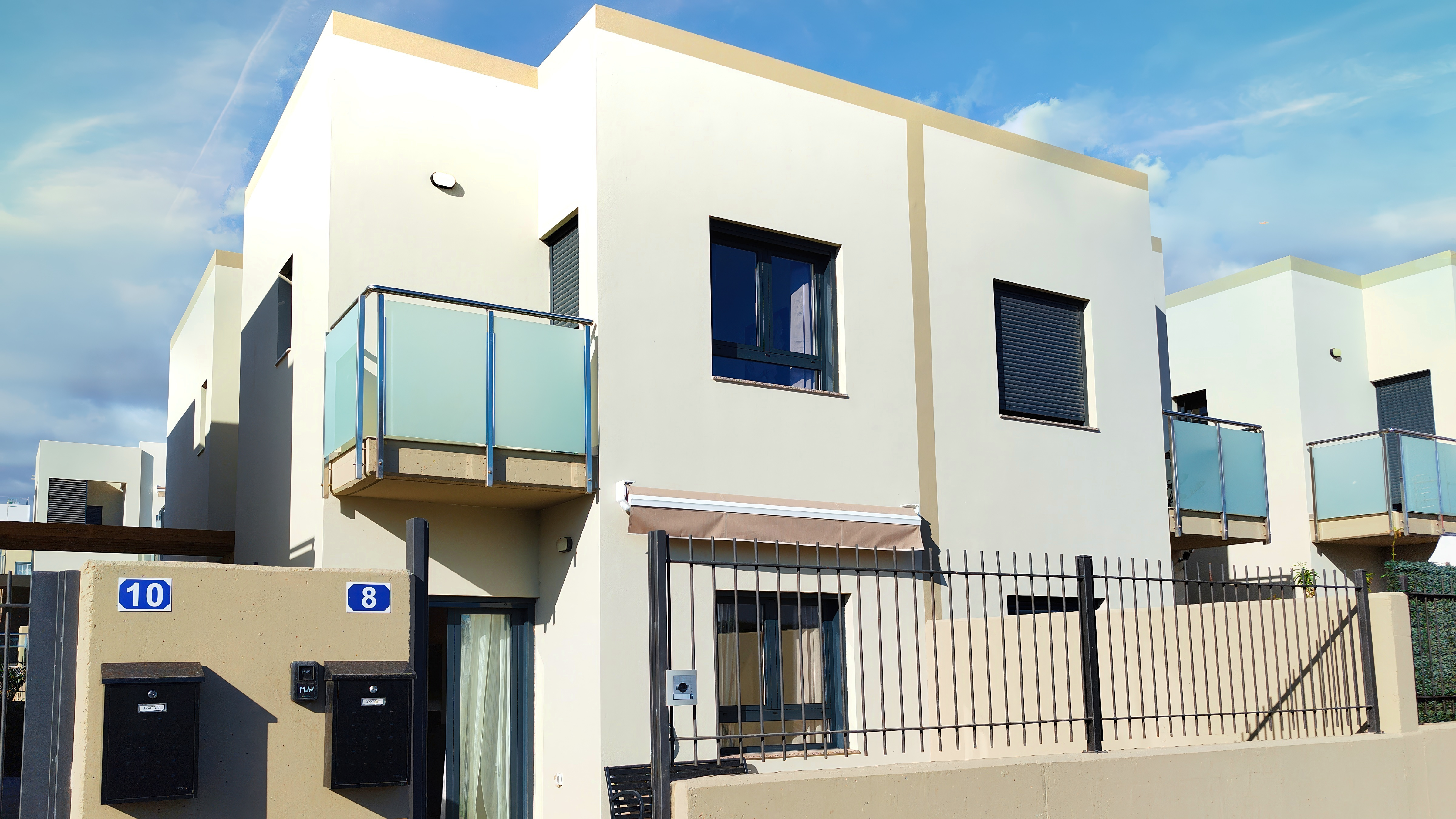 Discover our stylish and exceptionally clean 3-bedroom, 3-bathroom townhouse in Las Rosas — a hidden gem where modern design, comfort, and relaxation come together. This modern home is thoughtfully designed with elegant details, offering you far more space and quality than you’d typically find in the busy areas like Los Cristianos or Las Américas. This spacious two-storey home offers a bright living room with cosy seating and a large Smart TV (Netflix & YouTube). Elegant yet homely décor and carefully chosen details create a warm atmosphere where you’ll instantly feel at ease. The fully equipped kitchen has everything you need: stovetop, oven, refrigerator, dishwasher, microwave, a brand-new Nespresso coffee machine, and toaster. Enjoy meals together at the six-seater dining table inside, or outdoors on the private terrace for long, relaxed evenings. Each bedroom is a peaceful retreat: Master bedroom: king-size bed, en-suite bathroom, and a private balcony with wonderful sea & garden views. Second bedroom: queen-size bed in a calm, restful setting. Third bedroom: two single beds and a balcony overlooking the pool — perfect for morning coffee. All three bathrooms are modern, with walk-in showers and complimentary toiletries. 🏡 Guest Access Heated pool with free sun loungers and outdoor showers Private entrance & easy self-check-in Free street parking right at the door — always easy to find, unlike the busy resort zones Air conditioning in every room Fast Wi-Fi, washer, dryer & ironing facilities 📍 Location Nestled in peaceful Las Rosas, the house is just a 5-minute drive (20 min walk) to Las Galletas, a charming fishing town with a marina, seafood restaurants, supermarkets, diving centres, and a lovely promenade. The lively resorts of Los Cristianos and Playa de las Américas are only a 10–15 minute drive, so you can enjoy golden beaches, shopping, and nightlife when you want — while still coming home to a quiet, spacious retreat. Here you get the best of both worlds: authentic local atmosphere, easy access to attractions, and far better price–quality than the crowded tourist zones. 👥 Perfect For Families, couples, and groups of friends seeking comfort, privacy, and style — with plenty of room to relax and the ideal base to explore Tenerife.