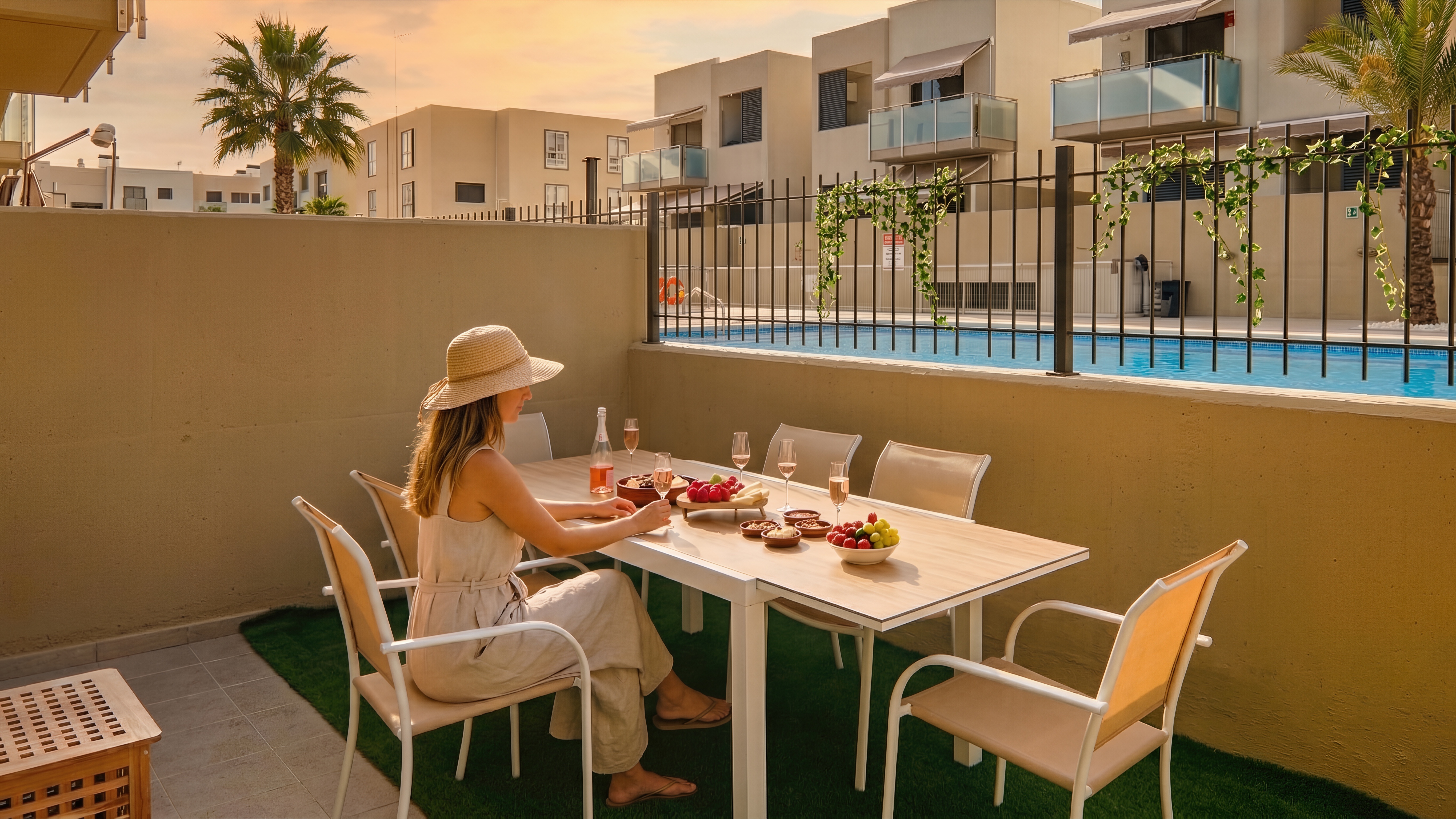 Swimming pool and sun loungers are free for guest use. No rental car needed — everything is within walking distance. Make yourself at home and use whatever you need.