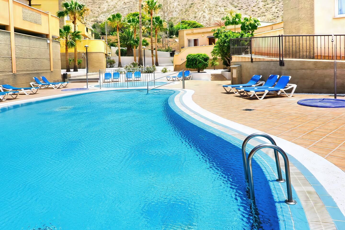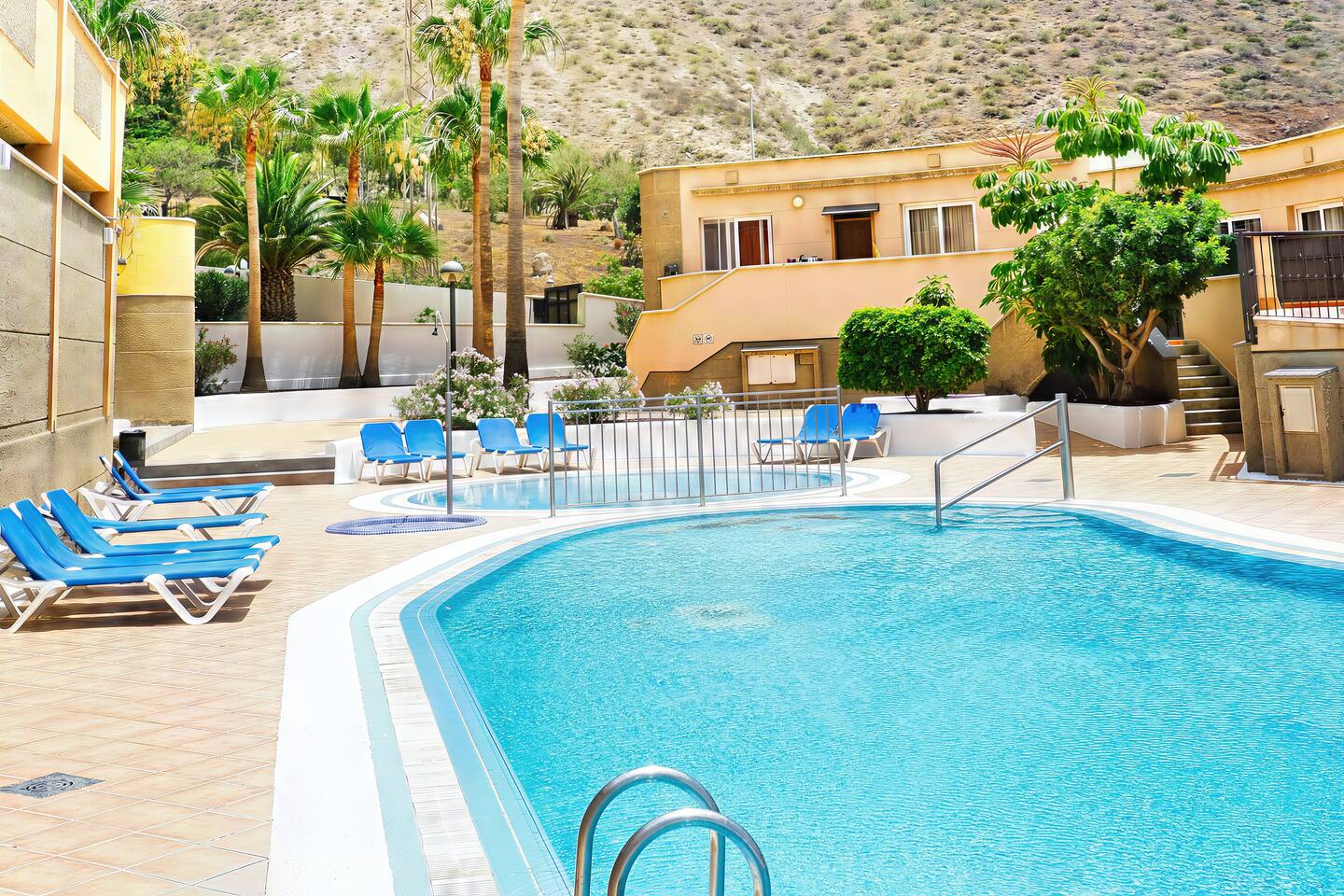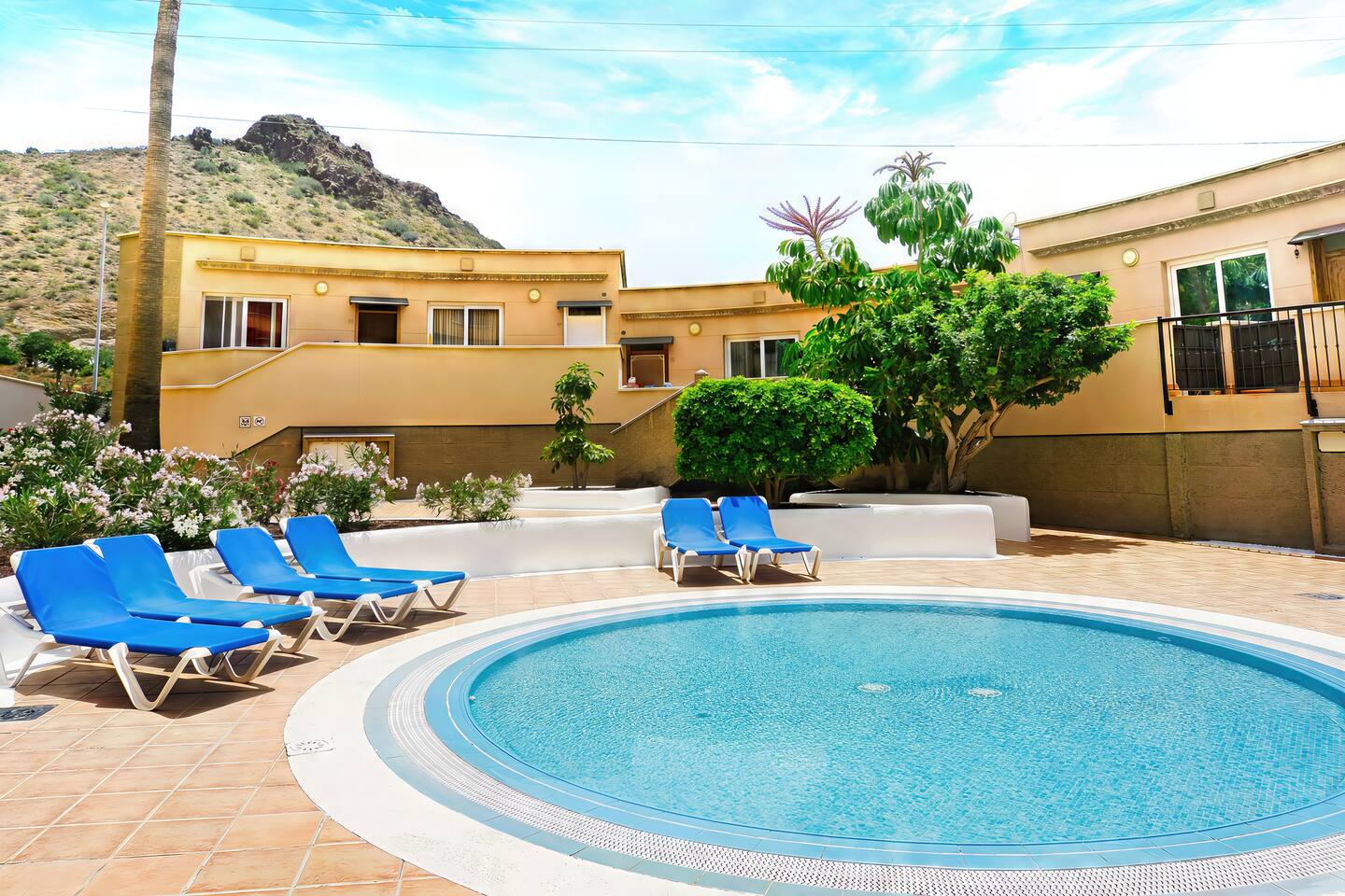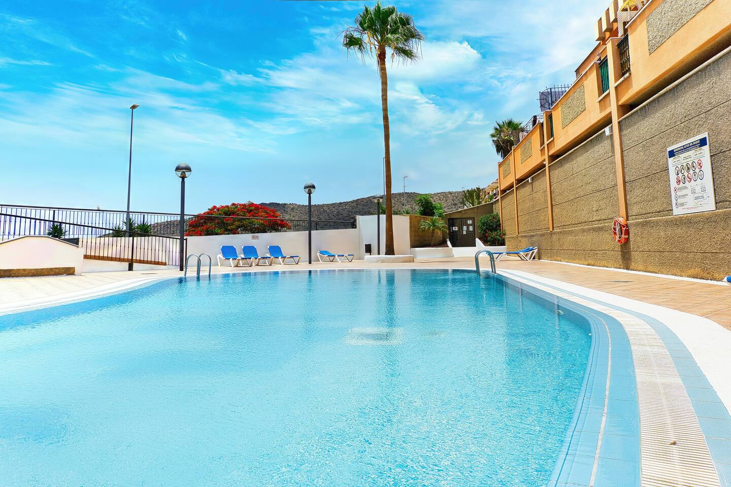 Discover tranquility in our serene vacation home, boasting elegant interiors and a welcoming ambiance. Step in from the courtyard or private garage and savor the coastal breeze. The living room opens to a spacious terrace with breathtaking ocean vistas and cozy outdoor seating—ideal for starlit naps or alfresco dining. Enjoy the peaceful pool area at Altos del Roque. Located just minutes from the renowned El Duque beach, it’s the perfect base to explore Tenerife’s charms.