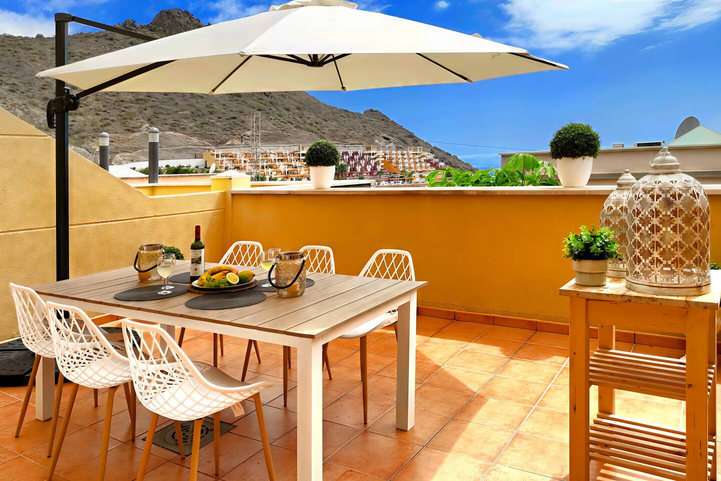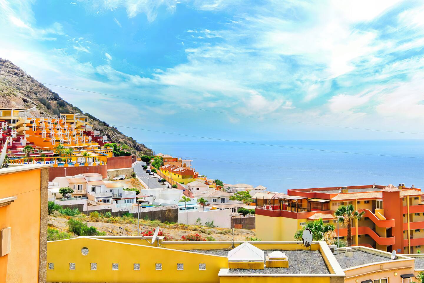 Located on the hill, in the upper area of Costa Adeje called Torvistas Altos, it has gorgeous ocean views, mostly large luxury residential buildings. Connected with a highway, shopping center, Siam Park, Aquapark and the beach area of Costa Adeje.